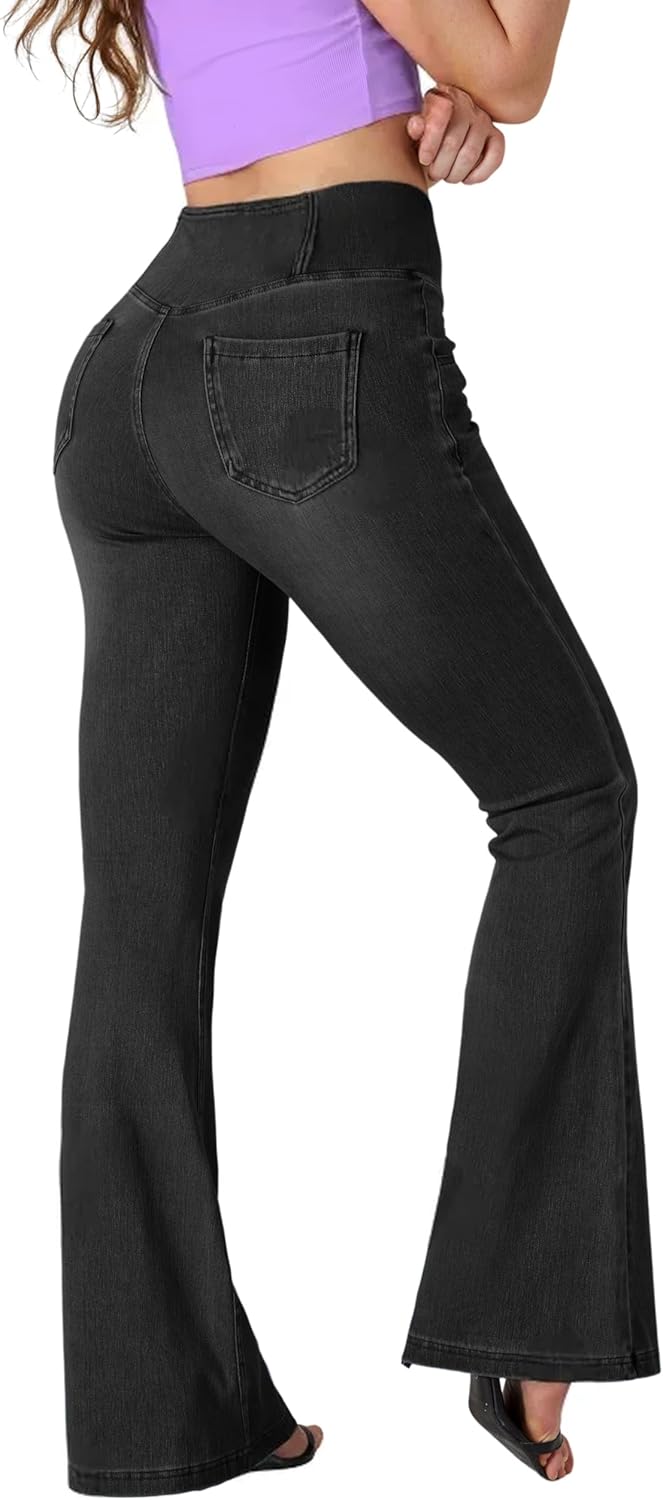 Flare Jean Leggings for Women,Bell Bottom Jeans for Women Knit Crossover High Waisted Bootcut Jean